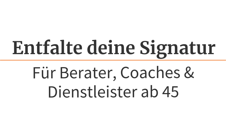 Nach zwanzig oder dreißig Berufsjahren hast du eine Weitsicht und Urteilskraft entwickelt, die weder jüngere haben noch eine KI simulieren kann. Du erkennst Muster, die anderen verborgen bleiben. Deine Signatur macht genau das sichtbar: Dass du aus Erfahrung verstehst, wie man Wissen so anwendet, dass es bei anderen tatsächlich eine Veränderung ermöglicht.